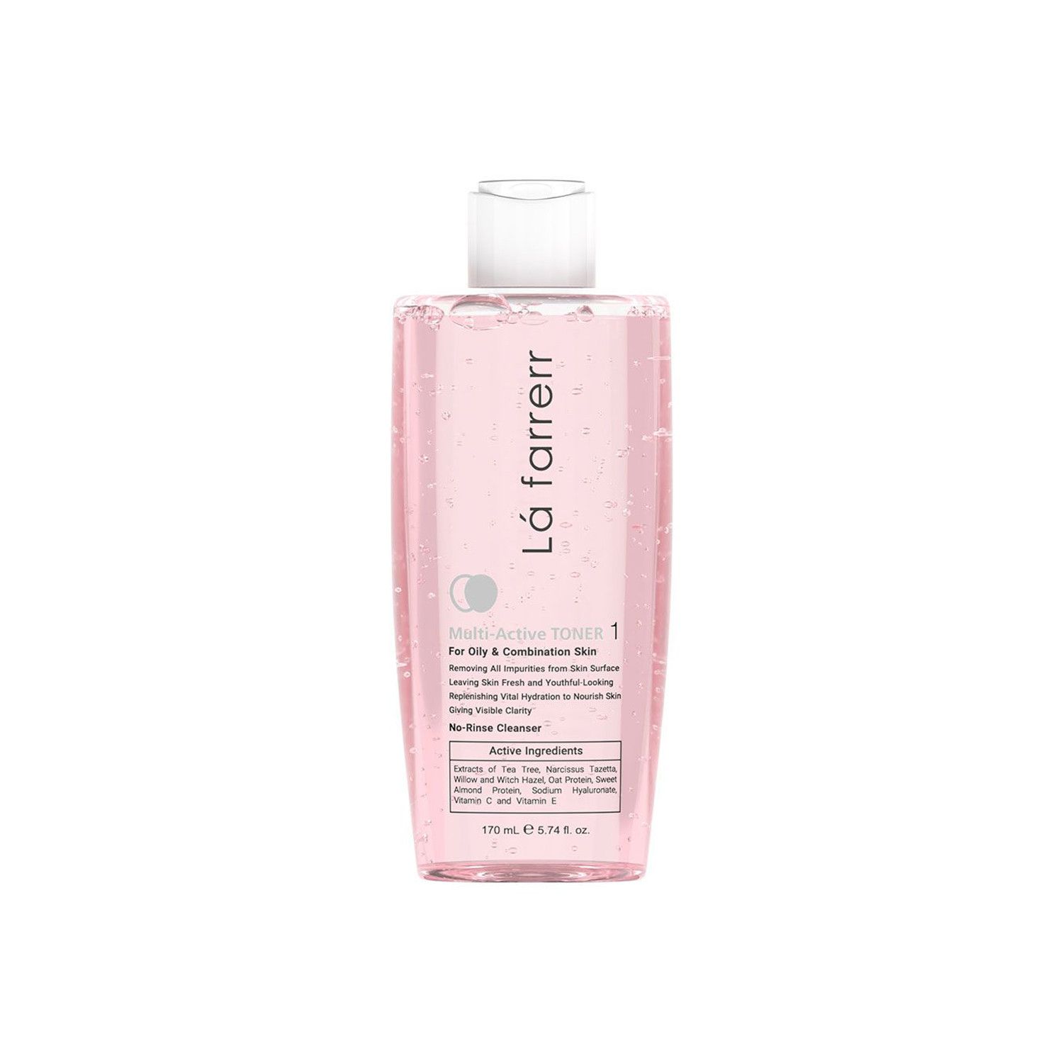 تونر پوست چرب لافارر ضمن از بین بردن اثر باقی مانده مواد آرایشی، آلودگی و چربی ها از منافذ پوستی و کاهش سایز آن ها، سبب درخشان شدن و شفافیت پوست می شود. این تونر صورت حاوی عصاره گل نرگس، بید سفید و درخت چای است که پوست را لطیف کرده و التهابات آن را تسکین می بخشد. ویتامین C ،E و سدیم هیالورونات موجود در ترکیبات تونر مولتی اکتیو لافارر ، باعث کنترل چربی پوست شده و براقیت پوست را کاهش می دهد. آبرسانی و تغذیه پوست در کنار مناسب بودن قیمت تونر لافارر پوست چرب ، آن را به انتخابی مناسب تبدیل کرده است.