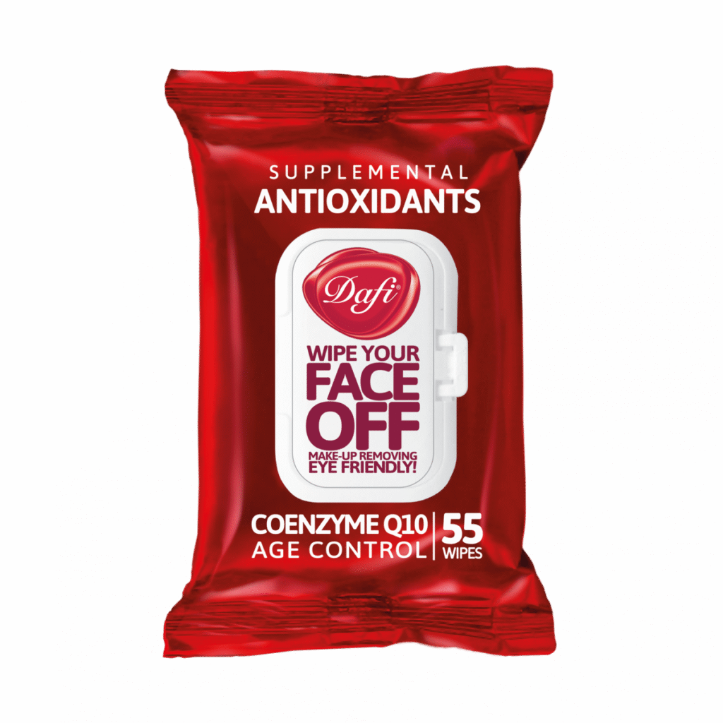 دستمال مرطوب پاک‌کننده آنتی اکسیدان براساس انواع پوست و نیاز طراحی شده است. حاوی Q10 یک کوآنزیم است که موجب تسریع سلول سازی پوست، افزایش کلاژن و در نتیجه جوانسازی می‌شود. دستمال مرطوب دافی به حفظ آب میان سلولی بعد از تمیز شدن پوست کمک کرده و موجب آلرژی و حساسیت نمی‌شود. همچنین فاقد پارابن، الکل و صابون است. دستمال پاک کننده آرایش دافی حاوی روغن جوانه گندم و آلوئه‌ورا که رطوبت بخش و ضد لک است. این دستمال موجب شفاف شدن پوست صورت شده و سلولهای مرده پوست را از بین می‌برد و به راحتی آرایش چشم و صورت را پاک می‌کند. همچنین به دلیل استفاده از عصاره شکوفه گیلاس ژاپنی به عنوان یک گیاه کمیاب با اثر جوان کننده و ضد چروک بسیار مورد توجه قرار گرفته است.
