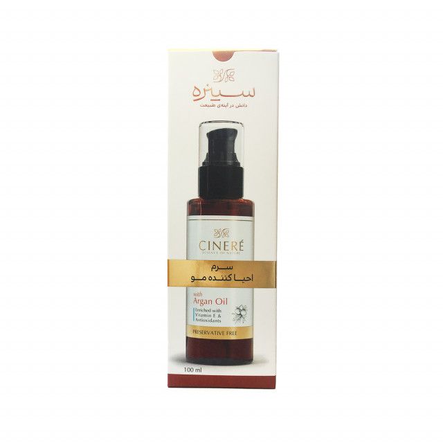 سرم احیا کننده مو آرگان سینره که به عنوان روغن آرگان سینره نیز شناخته می شود، یک سرم احیا کننده، آبرسان، براق کننده، حالت دهنده مو، نرم کننده، ضد وز و ویتامینه است. جذب سریع سرم مو سینره موجب می شود بدون ایجاد سنگینی یا چربی، موهایی نرم و درخشان داشته باشید. اگر موهای آسیب دیده، رنگ شده یا خشک دارید، پیشنهاد ما خرید سرم مو آرگان سینره مناسب موهای خشک و آسیب دیده است که با مصرف این سرم، موهایی لطیف و ابریشمی خواهید داشت. جلوگیری از ایجاد وز و موخوره، آبرسانی به مو، محافظت از موها و عدم ایجاد چسبندگی از دیگر ویژگی های این محصول است.