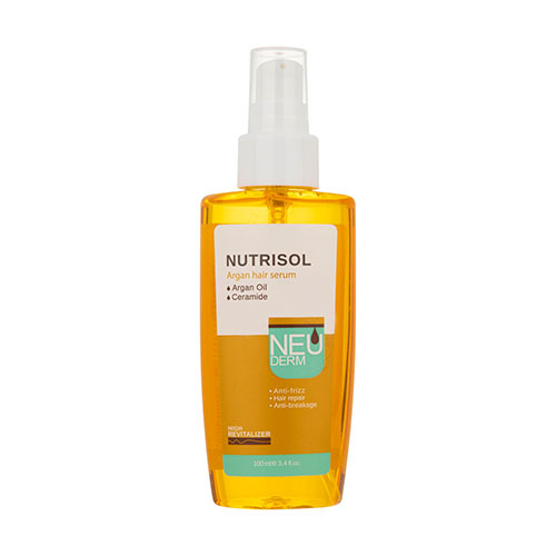 سرم مو آرگان نوتریسل نئودرم محصولی بسیار مناسب برای از بین بردن سریع وز مو است. این سرم حاوی آرگان و سرامید است و به همین علت باعث تغذیه فوری موها میشود. این سرم مو غلاف محافظ نامرئی بر روی هر تار مو ایجاد کرده و ضمن براق کردن موها باعث لطافت و شادابی آنها میشود. این سرم از محصولات مراقبت از مو نئودرم از موها در برابر حرارت سشوار و یا براشینگ محافظت میکند.
