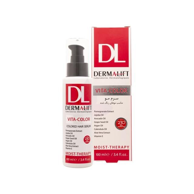 سرم مو ویتا کالر درمالیفت برای موهای رنگ شده فرموله شده است که ضمن ثبیت رنگ مو، از کدر شدن موها جلوگیری می کند. این سرم مو استحکام و لطافت موها را افزایش داده و با آبرسانی و تعذیه تار های مو از ایجاد موخوره، زبری و خشکی موها جلوگیری می کند. همچنین، سرم مو ویتا کالر درمالیفت از مو در برابر آسیب های وسایل حرارتی مراقبت می کند.