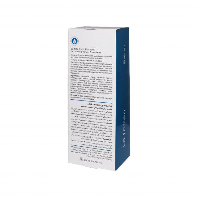 مشخصات شامپو بدون سولفات لافارر مناسب موهای رنگ شده و کراتینه حجم 200 میلی لیتر