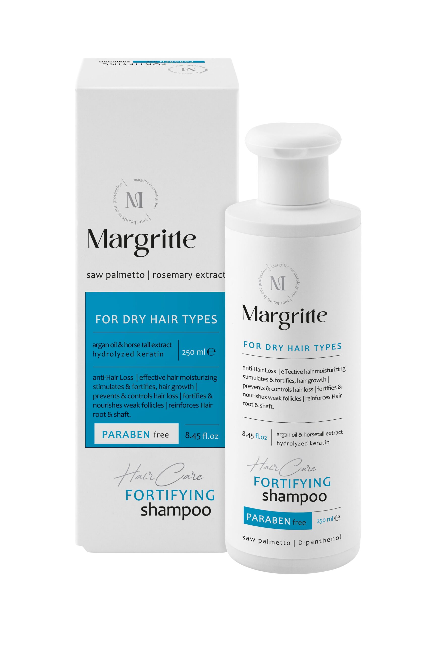 شامپو تقویتی و ضد ریزش مارگریت با بهره گیری از پیشرفته ترین مواد موثر، با انتقال اکسیژن و مواد مغذی به ریشه مو، موجب تغذیه و تقویت ریشه و ساقه موها شده، همچنین با داشتن عصاره های گیاهی سبب نرمی، درخشندگی، استحکام و مقاومت چشمگیر موها در برابر آسیب های محیطی می شود. این شامپو با دارا بودن اثر آنتی استاتیک و رفع گره خوردگی، حالت پذیری و شانه پذیری مو را افزایش می دهد.