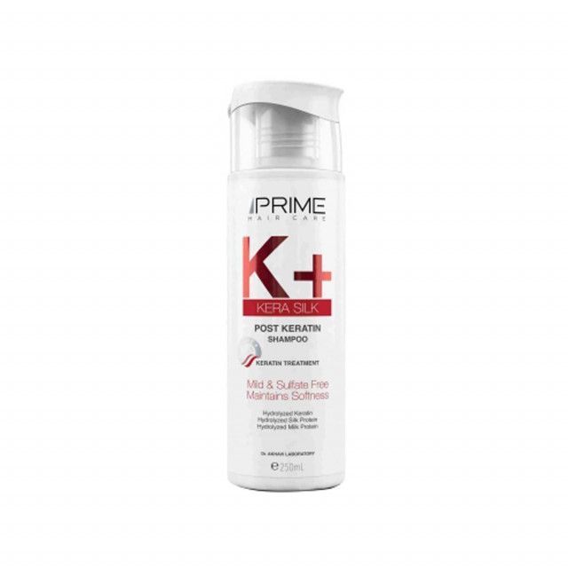 شامپو پرایم مدل +K فاقد سولفات است و شوینده ای ملایم برای موهای کراتینه شده محسوب می شود. این شامپو مو تاثیر مخربی روی موهای کراتینه ندارد و ضمن تمیز کردن کامل مو و پوست سر، از کراتین مو نیز محافظت می کند. همچنین با داشتن ترکیباتی نظیر کراتین، پروتئین ابریشم و شیر هیدرولیز شده، موها را نرم و درخشان کرده و سبب صاف شدن مو و باز شدن گره های آن می شود.