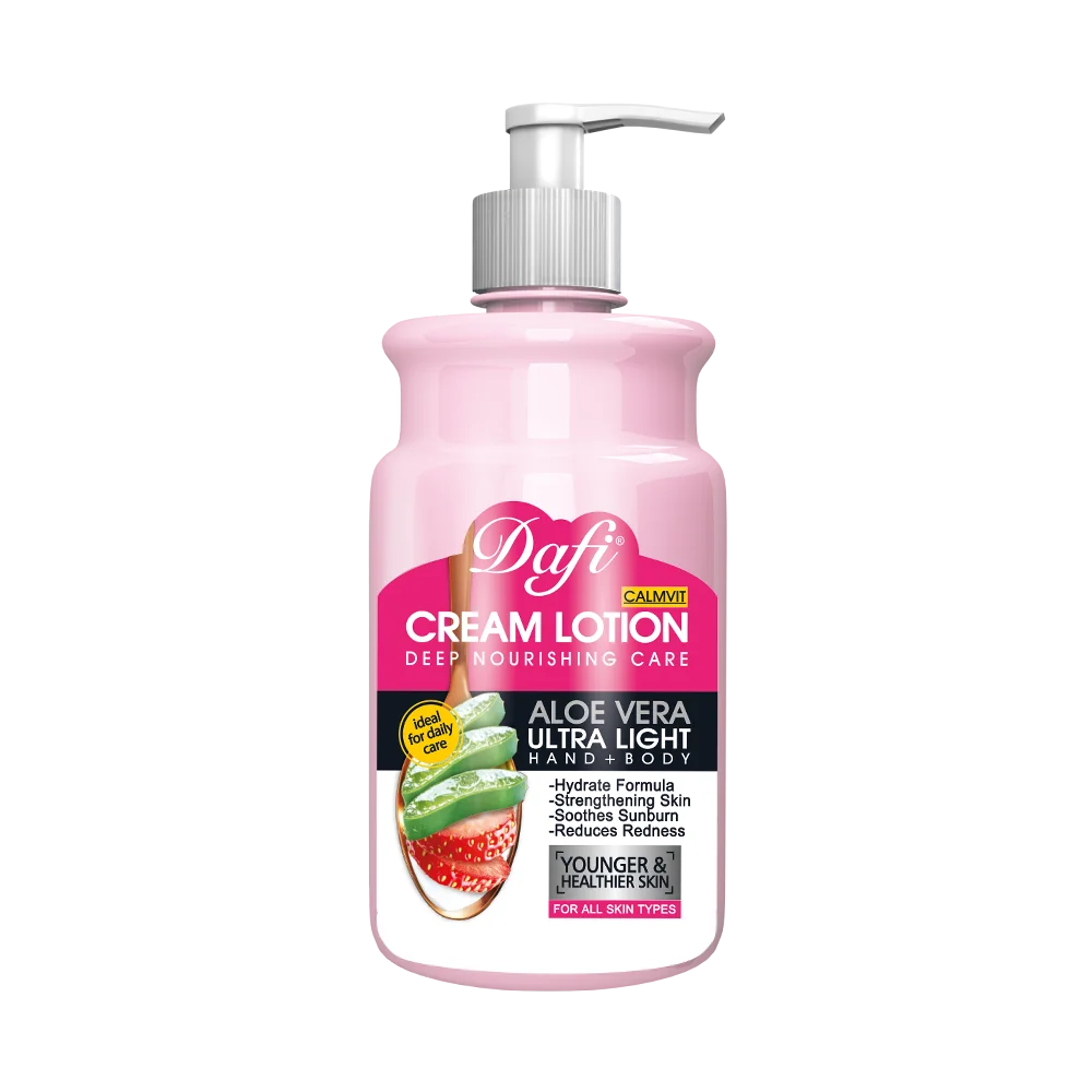 لوسیون بدن آلوئه ورا دافی، یک محصول ایدهآل برای استفاده روزانه جهت مراقبت از پوست بدن، دست و صورت است. این محصول با داشتن فرمولاسیونی پیشرفته مانع ایجاد خشکی، حساسیت و مشکلات پوستی شده و همچنین پوستی نرم، شاداب و شفاف را برای شما به ارمغان میآورد. این لوسیون با ترکیبات طبیعی و مغذی، انتخابی مناسب برای انواع پوست می باشد.