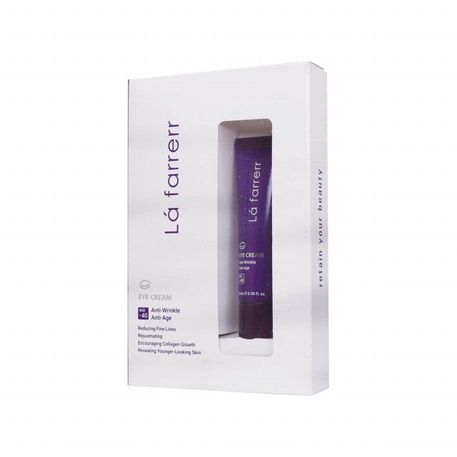 کرم دور چشم لافارر حاوی پپتید های موثر، هیالورونیک اسید، اورنیتین، فسفولیپید ها و فیتواسترول بوده و برای افراد زیر 40 سال مناسب است. این محصول با تقویت تولید کلاژن سبب بهبود و کاهش خطوط زیر چشم و پیشگیری از ایجاد چروک های عمیق دور چشم خواهد شد. این کرم با تغذیه رسانی و آبرسانی به پوست اطراف چشم باعث جوانسازی و بازیابی شفافیت پوست این ناحیه شده و افزایش استحکام و شادابی آن از دیگر اثرات این کرم دور چشم به شمار می آید.