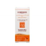 کرم ضد آفتاب رنگی هیدرودرم مدل Oil Free SPF50 محصولی کرم پودری از وسایل بهداشتی صورت و فاقد چربی بوده که برای پوست های چرب، مختلط و جوشدار فرموله شده است. این محصول با داشتن ساختار سیلیکونی، پوششی ابریشمی روی پوست ایجاد کرده و برای مدت طولانی از پوست در مقابل پرتوهای مضر نور خورشید محافظت می کند. همچنین، با تنظیم ترشح چربی پوست، از ایجاد جوش و آکنه جلوگیری می کند. فرمولاسیون ضد آب، مقاومت در برابر تعریق و شستشو و ماندگاری بالا از دیگر ویژگی های کرم ضد آفتاب هیدرودرم مدل Oil Free SPF50 است. این محصول دارای رنگ کرم پودری بژ گندمی بوده و به یکنواخت سازی چهره و پوشاندن ناهمواری های آن کمک می کند.