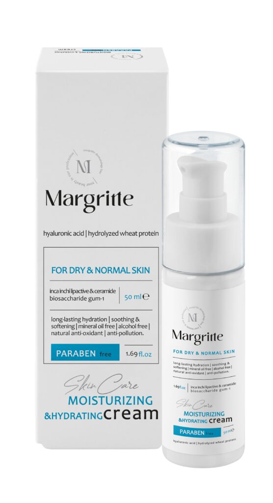 اشعه‌های مضر نور خورشید و آلودگی های محیطی می‌توانند باعث خشکی و آسیب به پوست شوند؛ بنابراین، بهره‌گیری از محصولاتی که خاصیت آبرسانی و محافظت از پوست را دارند، ضروری به نظر می رسد. کرم مرطوب کننده و آبرسان قوی مارگریت با فرمولاسیون ویژه خود که حاوی هیالورونیک اسید و سرامید است، به آبرسانی عمیق پوست صورت می پردازد. هیالورونیک اسید با خاصیت جذب آب، رطوبت را در لایه‌های عمیق پوست حفظ می‌کند و سرامید نیز با تقویت دیواره‌های سلولی، مانع از تبخیر آب و خشکی پوست می گردد.